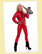 Ganz privat gibt es die sportliche Saxophonistin übrigens regelmäßig in Reithosen... "Reiten ist ein geniales Hobby - morgens über die Wiesen zu galoppieren ist pures Glück - und macht den Kopf frei für neue Showkonzepte und Ideen für neue Saxophonmusiken"... und in Turnschuhen: "...ich jogge ca. 3 x wöchentlich gute 15 km", denn Fitness ist für die Bühnenshow ganz wichtig.